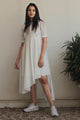 Asymmetric hem full flared ...Block printed cotton kurta in Off white