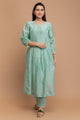 Chanderi Hand Loom Kurta with Pintucks, Cotton Pants in Mint Green with Hot Pink Chanderi Silk Dupatta (set of 4)