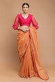 Sheer handwoven Kurta in Tangerine Orange Chanderi Silk. Highlights of Hot Pink piping and mini tassels on the front, shoulders and sleeves. Back Yoke with gathers for a free fall. Comes with a separate Cotton slip. Paired with straight Pants in Hot Pink Chanderi with Gold Lace edging. This contemporary Kurta set is a smart choice for women who prefer modern ethnics.