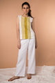 Fringe stripe cotton Top in...Chanderi Saree in Yellow & White