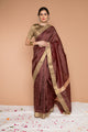 Chanderi Hand Loom Merceriz...Chanderi Hand Loom Tissue Saree in Oak Brown, Blue & Magenta