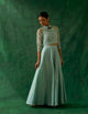 Coordinate Set - Waistcoat Top with Flared Skirt in Silver & Gold Zari Silk (Set of 2)