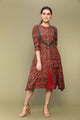 Cotton Dress with Stylised V-Neck in Terracotta Brown