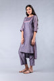 Suit set with Flared Jacket...Cotton hand block print High & Low Kurta with pants in Blush Pink & Blue (Set of 2)