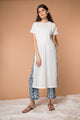 A beautiful Cranberry red kurta stylized into a razer back strappy neck and intricate kantha embroidery in white on the neck band.