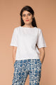 White cotton Top with fring...Fringe stripe cotton Top in White & Ochre
