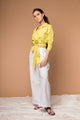 A modern stylized V-neck Kurta that opens up as a jacket and closes at a side with buttons. Adopted from an Angarakha pattern and simplified into an easy-to-wear everyday Kurta. The high slits allow it to be worn with a skirt, pants or even denim to suit your style. Can also be styled as a full front open, long-length Jacket.