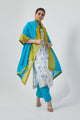 Aqua Green Chanderi Handloo...High Slit Kurta & Palazzo in Off White Cotton Hand Block Print(Set of 2)