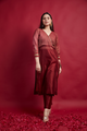 Ready to Wear Saree in Maro...Maroon Raglan Sleeves Kurta Set with Embroidered Lace Details in Chanderi Handloom (Set of 2)