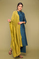 Paneled Anarkali Kurta in Silver Zari with deep plunge neckline is paired with contrast Blue Pants and Silver Zari striped Chanderi Dupatta. The delicate lace details on the edges of the Dupatta add to the subtle appeal of the ensamble. A classic design thats a must-have outfit in your wardrobe.