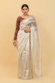 White & Gold Handwoven Kata...Sky Blue Handwoven Katan Silk Saree With Broad Border & Blue motifs