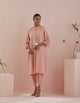 Textured Cotton Anarkali in Peach with Solid Pink Pants and Pink Chanderi Silk Dupatta (Set of 3)