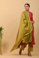 V Neck Paneled Kurta in Grey, Lime & Pink, Cotton Pants & Chanderi Dupatta (Set of 3)