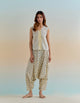 A short Cotton Tunic in floral hand block print has a drawstring to fit and give a gathered detail on the waist. It's paired with matching Dhoti Pants with an elasticated waist. A comfortable outfit for casual outings and travel. .