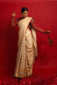 Chanderi Handloom Ready to Wear Saree with cut dana Embroidered lace on the pallu and Gold scallop lace all over, paired with a Maroon V-neck blouse to match. Designed to wear in a family wedding - hassle-free and comfortable drape, versatile enough for future use. Brides looking for subtle and classic designs can accessorize the saree for the big day. The blouse has a side zip closure, saree comes with a side pocket.