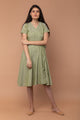 A comfortable Cotton Kaftan in Hand Block print. Boat neck and belt tie up at the waist. Loose, free fall with Mint and Yellow border design on the sides. This short length Kaftan is ideal to style as a Dress or Kurta with Pants for summers