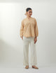 Beige front open Textured Cotton Kurta with Cotton Glaze Pants (Set of 2)