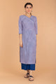 Slant Neck Pinstripe Kurta ...Cobalt Blue Kurta with Forward Slit in Swiss Dot Cotton