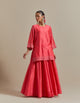 Pink Skirt with Short Kurta...Ivory & Silver Zari Layerd Skirt, Blouse & Pink Chanderi Dupatta (Set of 3)