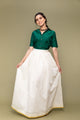 You can style it with a blouse in the same fabric or a Gold Zari one from the Vinusto collection. An elegant & versatile piece for any occasion depending on accessories..