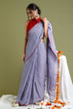 Desigend by Vinusto-Tabacco Brown & Silver stripe color blocked Saree with facing and lace inserts all over. Fusion of Tabacco Brown & Silver Stripes Chanderi fabric using lace inserts to create color block effect. Style it with a Blouse in the same color, Red or a Silver one. Versatile set can be styled for the festive look, or as formal wear. The Saree is handcrafted by Vinusto.