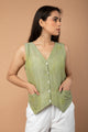 Apple green Top with Off White Trousers in Handloom Cotton from Sambalpur (Set of 2)