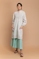A bright colored Kurta in Textured Cotton dobby. It has a clean look and straight fall that makes it easy to pair with multiple Pants of choice. Paired with flared Palazzo in Textured Cotton with a comfort fit.