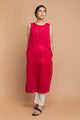 Hot Pink Kurta in Textured Cotton with TangerineOrange Cotton Pants & Ombre Dupatta(Set of 3)