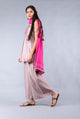 Chanderi kurta in Fuchsia has a yoke with intricate hand embroidery in gold threads. The neck line, slits and sleeves have Green detailing. The high- low hemline adds an interesting element to the garment. It comes with cropped Chanderi pants to match.