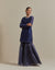 A Blue Chanderi embroidered Jeweled Neck kurta is paired with a Gharara, in Silver Zari stripes is a traditional Indian attire and a blend of style and comfort. The Silver Zari stripes Dupatta with gota lace details adds a touch of shimmer. The ensemble exudes a regal charm that is both traditional and chic.