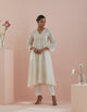 Anarkali Kurta in Textured ...Anarkali Kurta in Textured Cotton with Solid Pants in Off White & Pink Chanderi Dupatta (Set of 3)