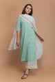Chanderi HandloomAnarkali Kurta with Cotton Pants in Mint Green & Ivory Chanderi Silk Dupatta (Set of 3)