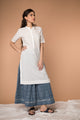Straight Kurta with gathere...Cotton Razer back Kurta with Kantha embroidery and Pant in White & Aqua Blue (Set of 2)