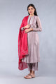 Chanderi Handloom Kurta and...Handloom Chanderi Kurta, Cotton Palazzo in Teal & Grape purple chiffon Dupatta (set of 3)