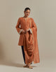 Gold Zari Silk Kurta with Stipe Sharara and Dupatta in Saffron Brown Chanderi Handloom (Set of 3)