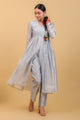 Multi Colored V Neck Paneled Kurta, Grey Pants in Chanderi & Cotton With Silver Stripes (Set of 2)