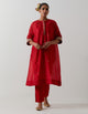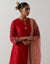 Red Embroidered Kurta Set with Raglan Sleeves, Salwar & Tissue Dupatta (Set of 3)