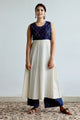 Kurta and Skirt Set with st...Suit set in Blue hand Block print with Cream Flared Jacket (set of 3)