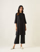 Coordinate Set- A Line Pin ...A Line Pin tuck Kurta with Cotton Pants in Black & Chanderi Handloom Dupatta in Lemon Yellow(Set of 3)