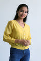 Pure Chanderi sheer crop shirt in Ivory/ Off-White with a V neck and front button closure. It has an added waistband for a gathered look. Sleeve cuff with slight gathers. Wear it for a casual western look or style with a contemporary saree for an Indo-western look Casual Wear/ Formal wear.