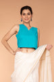 V Neck Sleeveless BlouseCotton Hand Block Printed Blouse in Blush Pink & Indigo