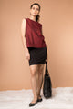 V-neck top in handloom cotton with a soft sheen. Ladder lace detail on the centre front and curved bottom. Pair this solid top with comfortable pants to lounge in at home, or with denims when stepping out.