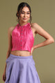 Pink Halter Neck Blouse wit...Pin-tuck bell sleeve top in Maroon