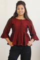 Pin-tuck bell sleeve top in...Pleated Top in Green & Yellow Hand Block Printed Cotton