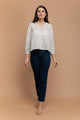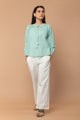 Hand Block Printed Shirt in...White Top with Sweeatheart Neck in Textured Cotton