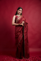 Coordinate Set- Ready to Wear Saree & Blouse in Maroon Chanderi Handloom with Embroidered Lace details (Set of 2)