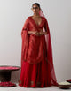 Red Embroidered Kurta Set with Raglan Sleeves, Salwar & Tissue Dupatta (Set of 3)