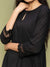 Black Textured Cotton Dress with Lace Trims